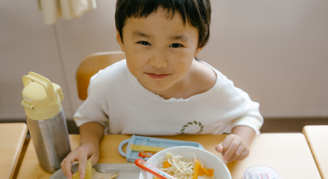 毎日校内の給食室で作った出来たての給食を全学年でいただきます。